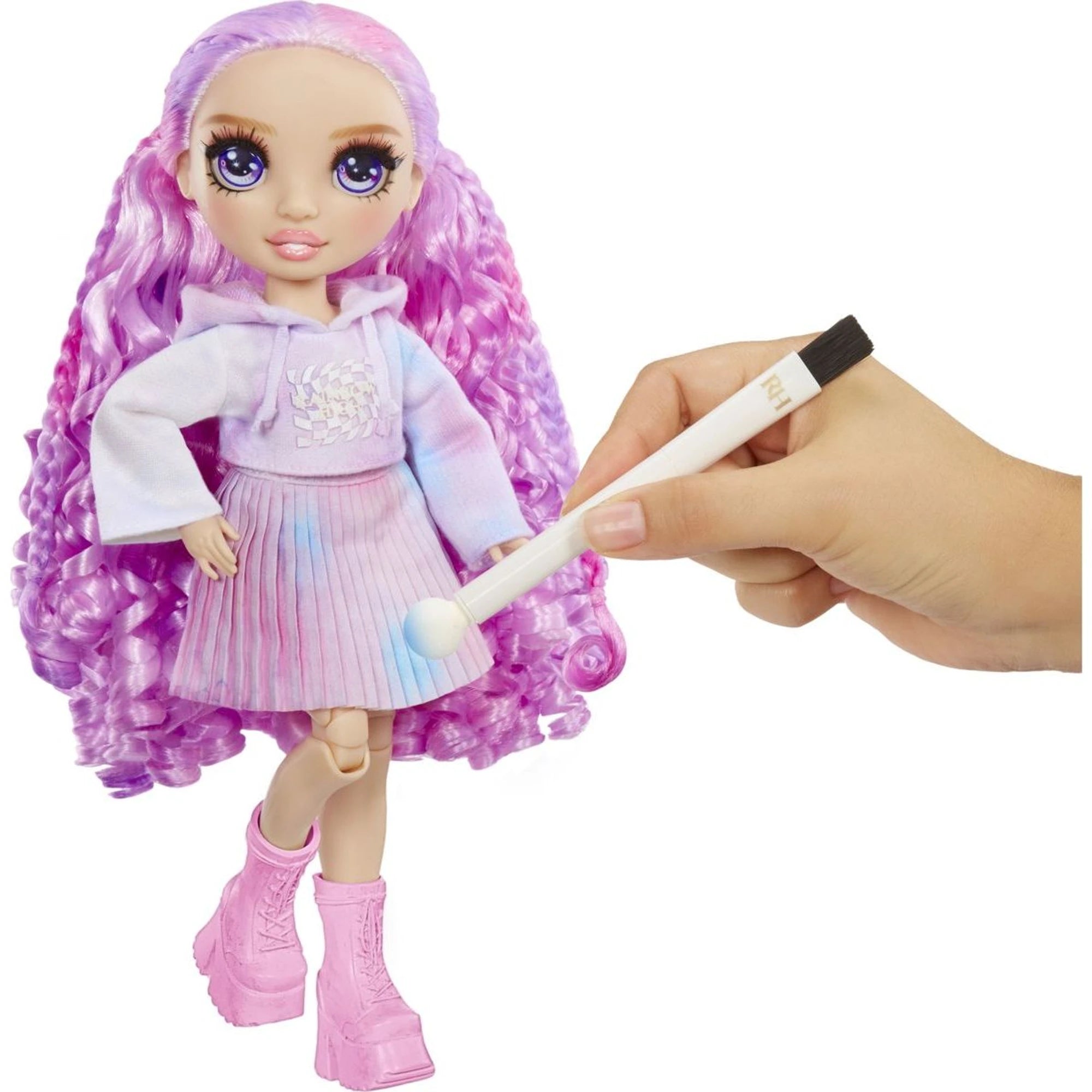 Rainbow High WaterColor Lalka o fioletowych oczach, którą dziewczynki mogą pokolorować dalej według własnej fantazji.