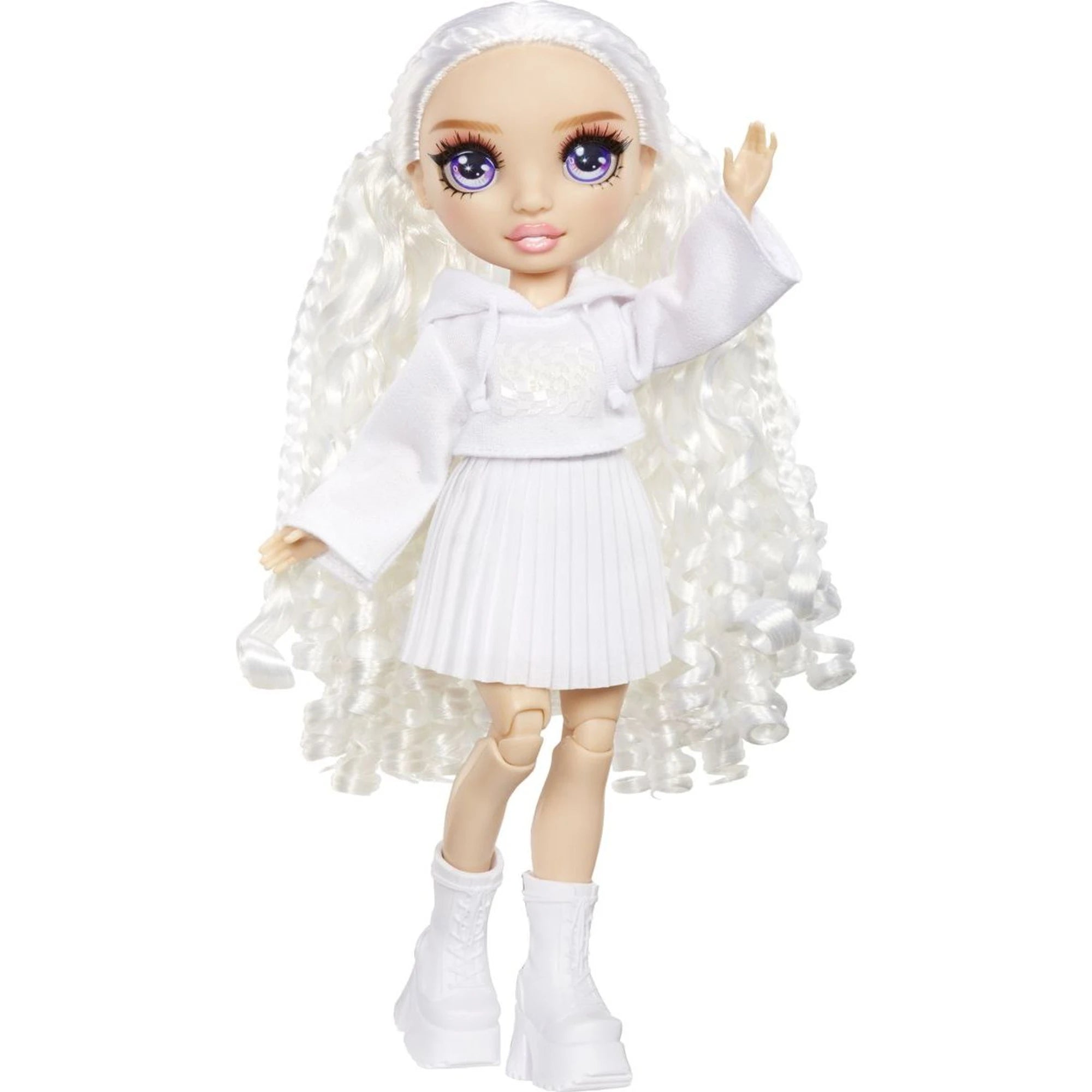 - lalka z ruchomymi stawami, białe włosy, biały outfit